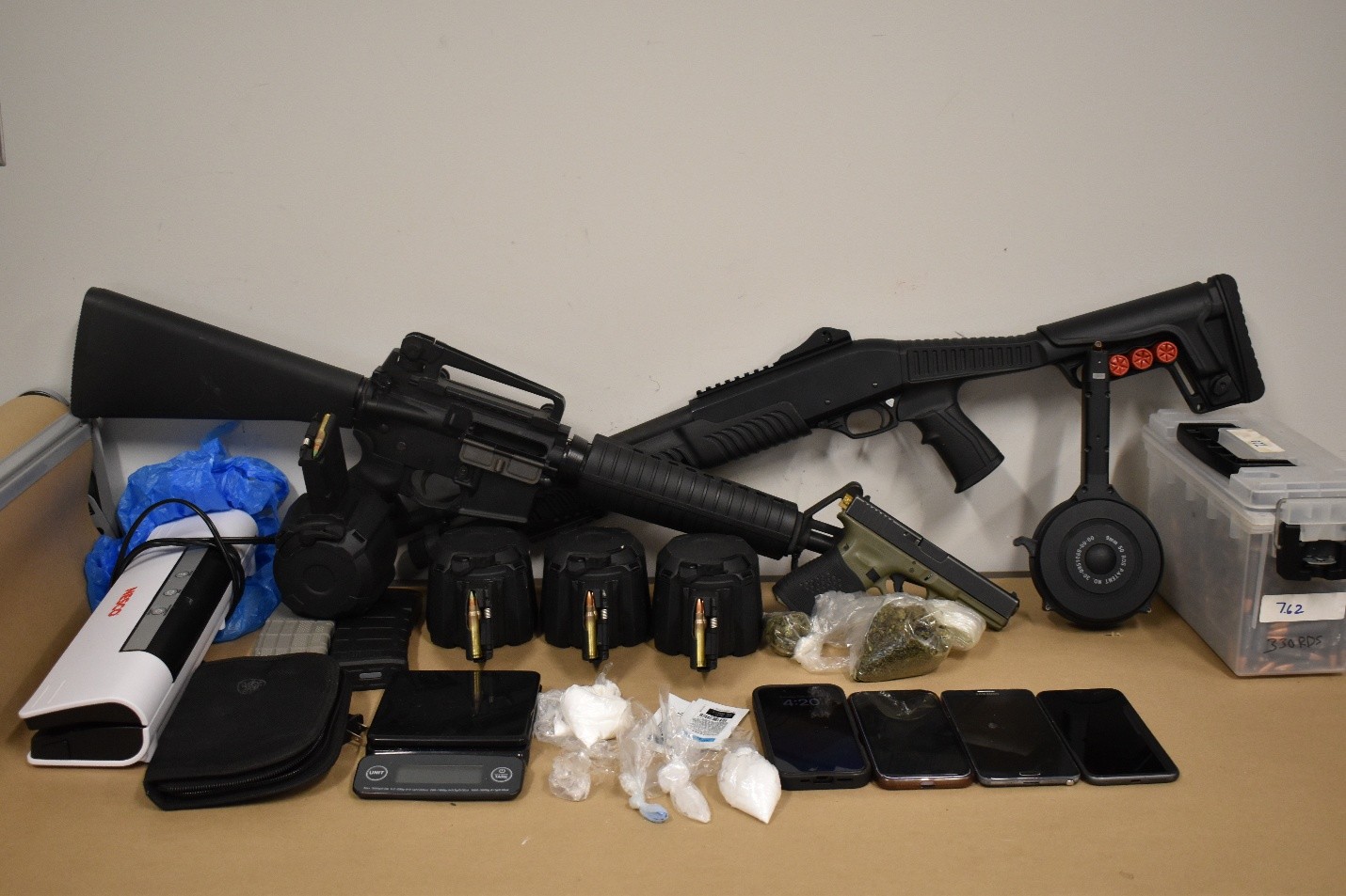 On Tuesday, February 25, 2025, the Jefferson County Sheriff’s Office Narcotics Unit, with the assistance of the Drone Unit, executed a search warrant in the 900 block of 47th Place North, Birmingham, Alabama. The search warrant resulted in the arrest of a male suspect and the seizure of narcotics and weapons.