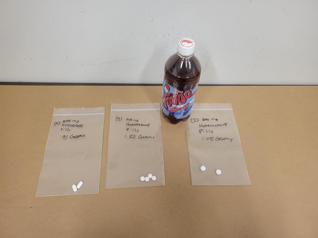 Narcotics seized: 106 grams of Hydrocodone, and .9 grams of Oxycodone